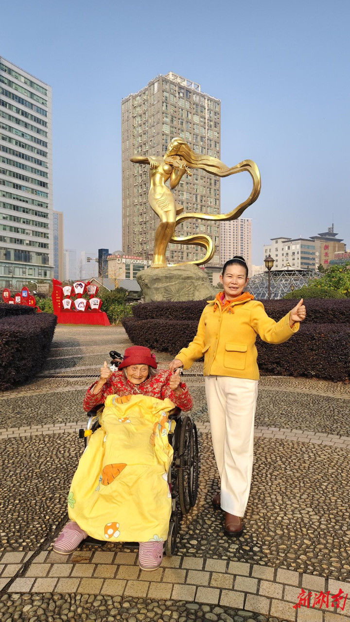 起初,李葵良宗旨带母亲望望更高大的寰宇,但老东谈主前几年作念了髋重要手术,出行必须依靠轮椅,远程跋涉多有未便。为了让母亲既能享受游玩的乐趣,又无须承受路径劳作,李葵良调度了宗旨,带着母亲一一打卡长沙的景点。岳麓山、省博物馆、义士公园、梅溪湖……3年间,长沙的大小景点齐留住了这对母女的身影。