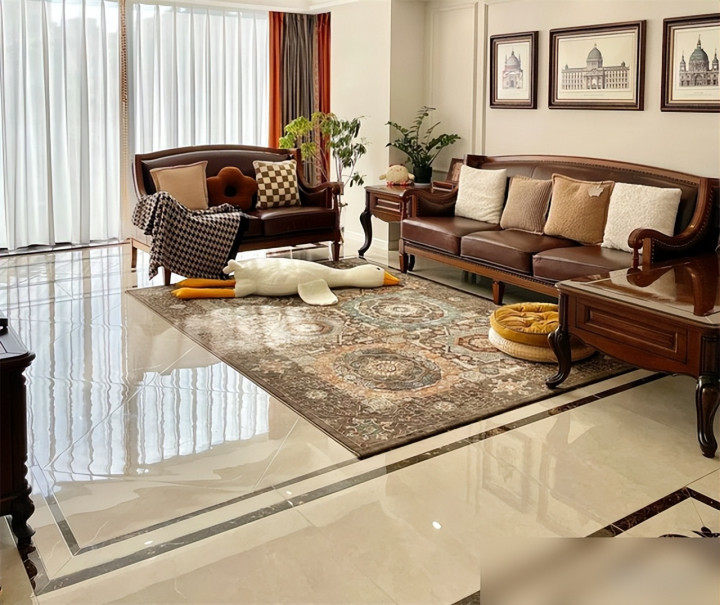 咫尺通铺瓷砖多知道,省工省钱还显大,孩子玩滑板车皆庞大不少。