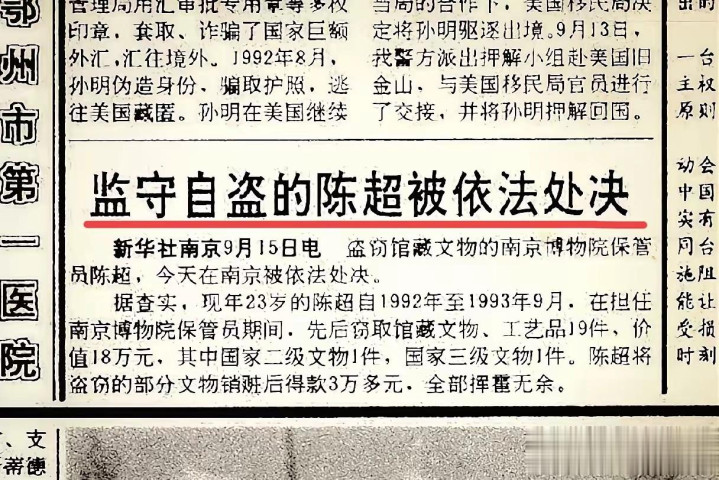 技能拨回上世纪90年代,阿谁文物措置体系尚不完善的年代,南博爆出了一桩颤抖业内的丑闻。20多岁的防守员陈超,应用职务之便监守自盗,倒卖的藏品价值高达18万元。在阿谁万元户齐算迥殊的年代,18万元号称天文数字。而更让东说念主细念念极恐的是,一个小小的防守员,竟能闲散将馆藏文物转手营利,这背后透露的,是库房措置的形同虚设、文物登记的舛讹百出。最终,陈超因罪戾严重被照章处决,可这起案件留住的暗影,却远未隐没——连底层防守员齐能钻空子,身处院长高位的徐湖平,果真能独善其身吗?